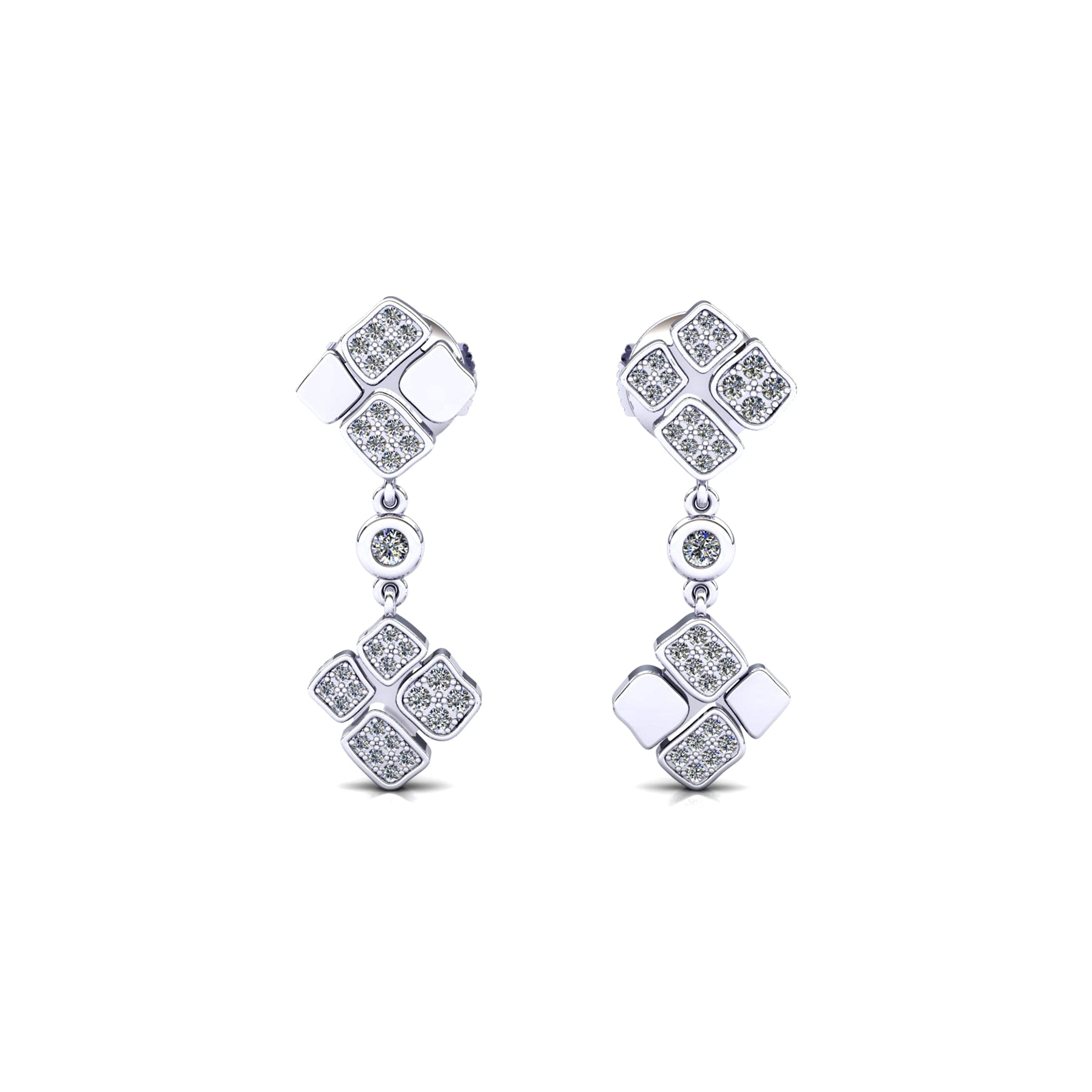 Dangling earrings 2 pavings & 1 closed Diamond inverse